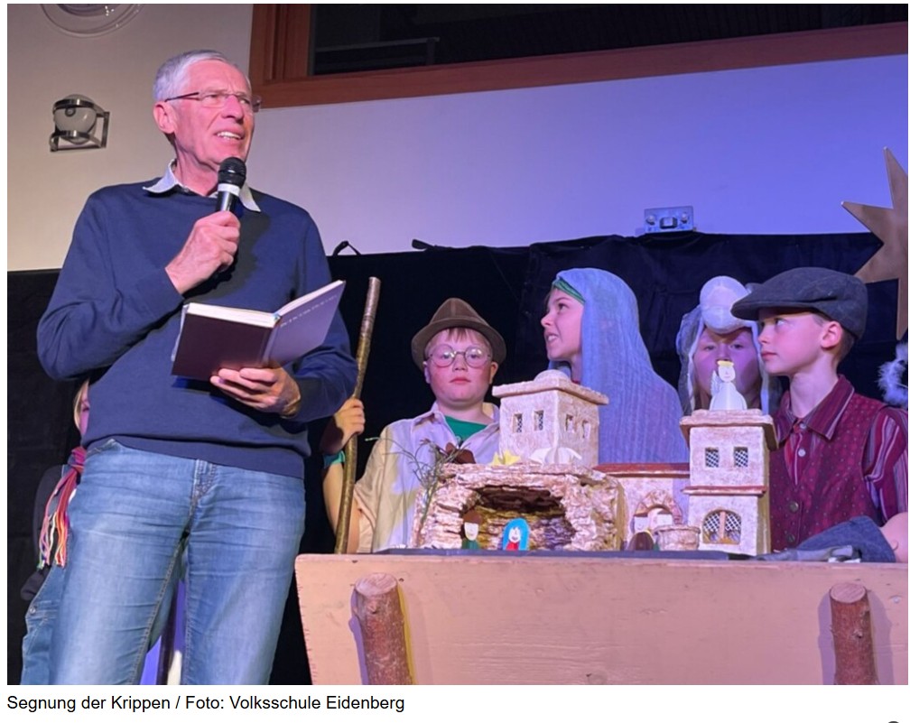 Im Rahmen der Weihnachtsfeier in der Volksschule Eidenberg wurden die von den Schülerinnen und Schülern mit viel Fleiß und Begeisterung selbst gebauten Weihnachtskrippen feierlich aufgestellt und von Diakon DI Hubert Mayr gesegnet. Die liebevoll gestalteten Werke zeugen von großem handwerklichem Können und Kreativität.