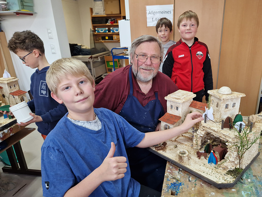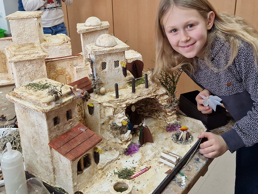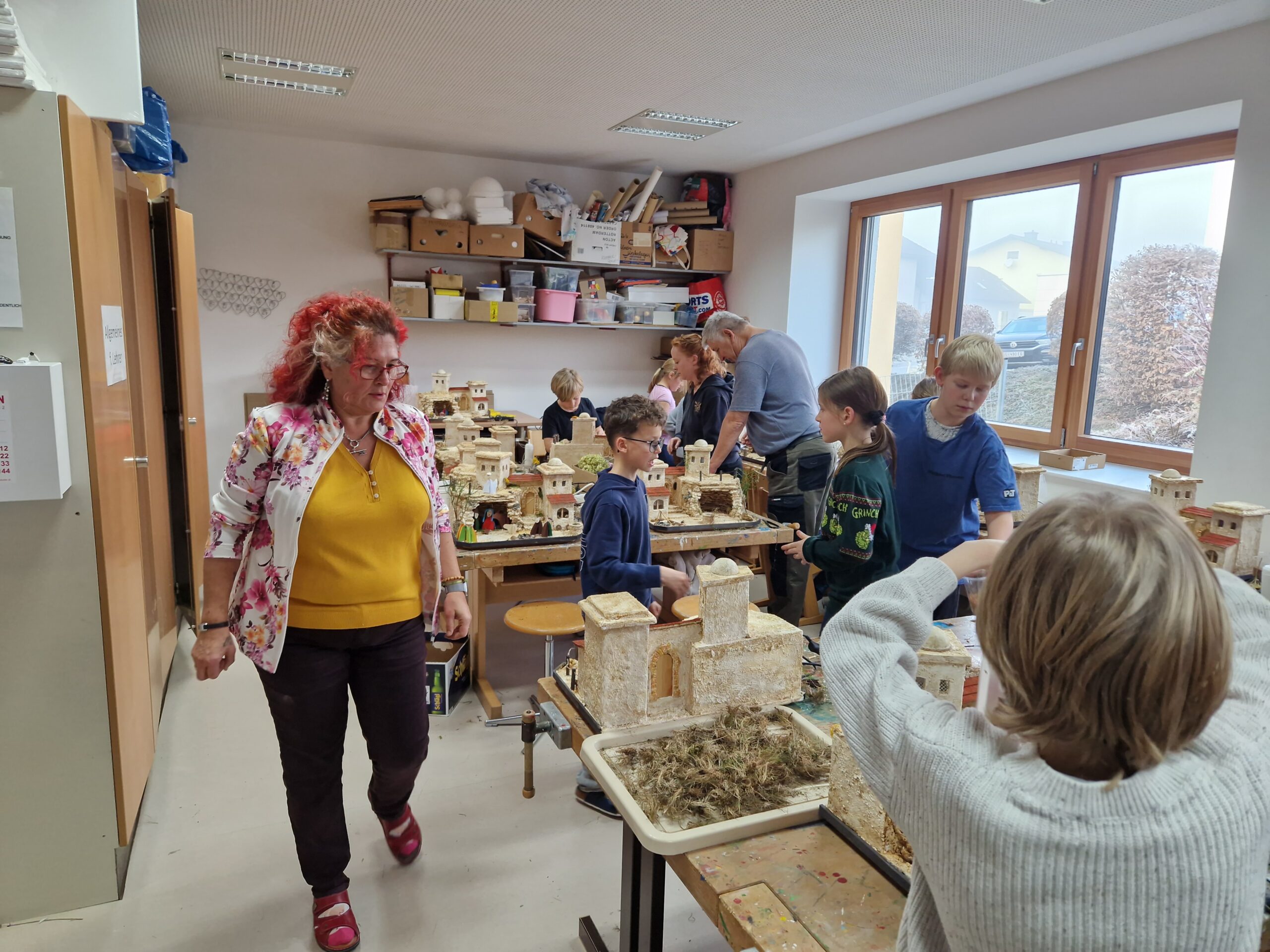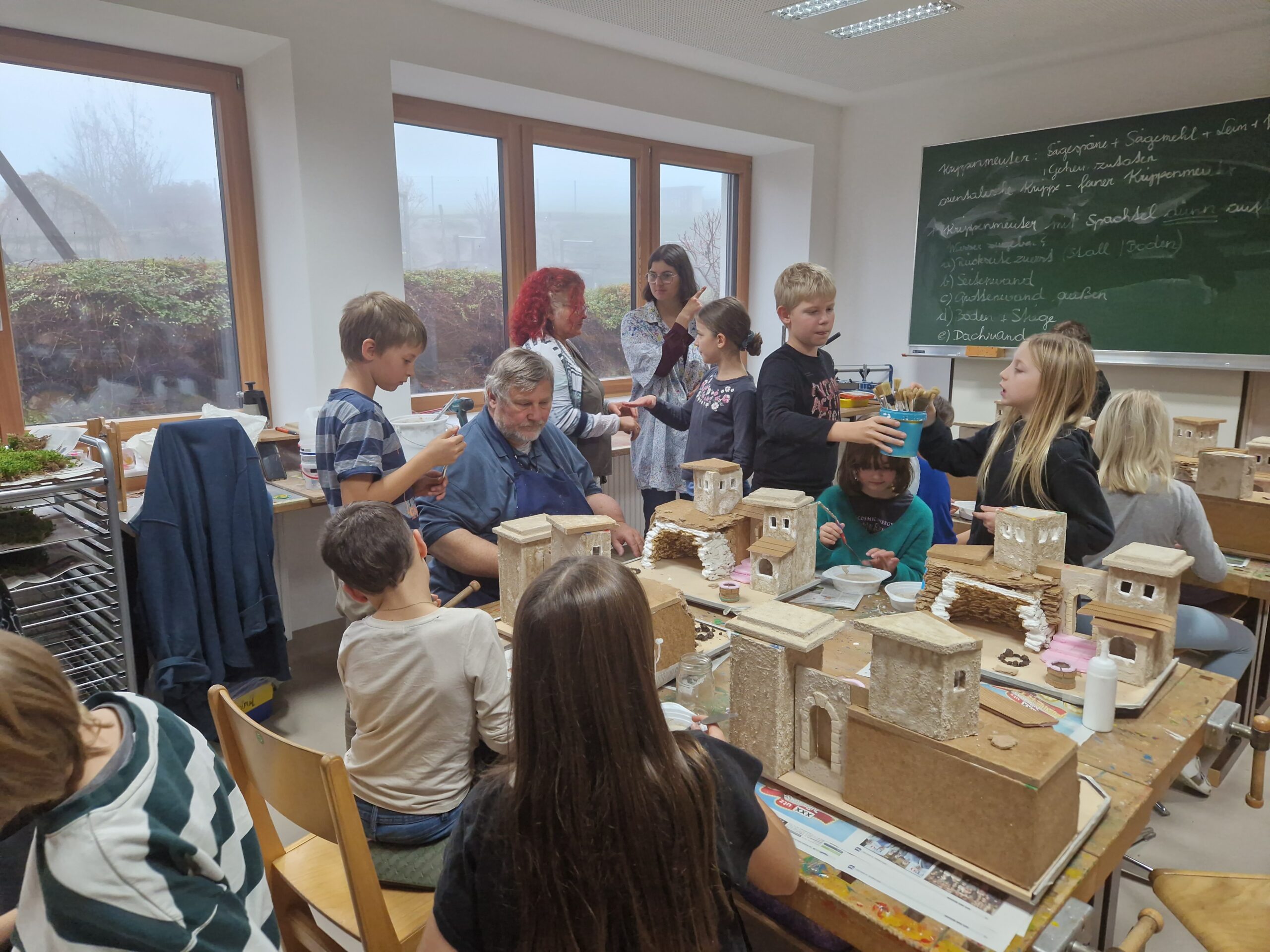In der Volksschule Eidenberg wurde ab Herbst mit den 23 Schülern der vierten Klassen im Rahmen des Werkunterrichts orientalische Krippen gebaut. Das von der Werklehrerin VOL Dipl. Päd. Rebecca Hofbauer BEd MA geleitete Projekt wurde eifrig von den ehrenamtlichen Krippenbaumeistern Lydia Schmidinger und Michael Thomasberger der d‘Mühlviertler Krippler Eidenberg und ihren beiden Krippenbau-Helfern Karina Leitner und Helmut Umbauer unterstützt. Zur Gänze finanziert wurde das Projekt auch heuer wieder durch den Eidenberger Verein der d’Mühlviertler Krippler.